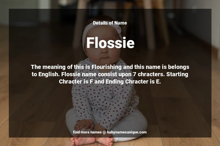 The name Flossie is chosen by those who are willing to find Unique Transgenders Baby Names. The meaning of this is Flourishing and this name is belongs to English Origin. Baby Name Flossie consist upon 7 chracters. Starting alphabet is F and ending alphabet is E. This name is used primarily by parents who are considering unique baby names for Transgenders. The Zodiac Sign suitbale for this name are;