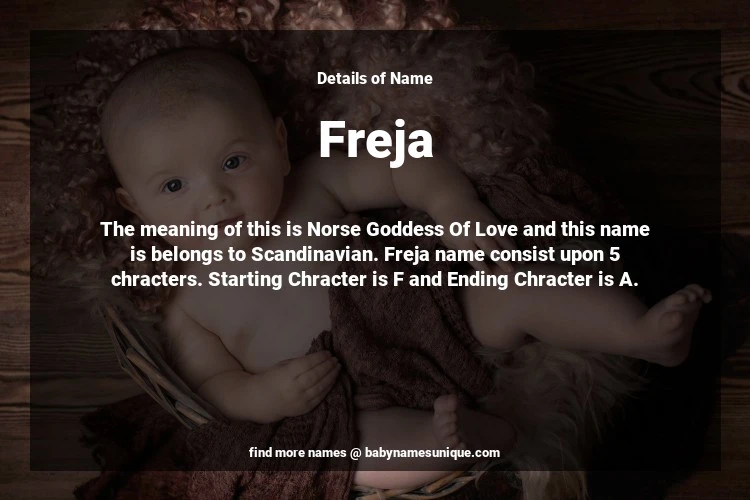 The name Freja is chosen by those who are willing to find Unique Transgenders Baby Names. The meaning of this is Norse Goddess Of Love and this name is belongs to Scandinavian Origin. Baby Name Freja consist upon 5 chracters. Starting alphabet is F and ending alphabet is A. This name is used primarily by parents who are considering unique baby names for Transgenders. The Zodiac Sign suitbale for this name are;