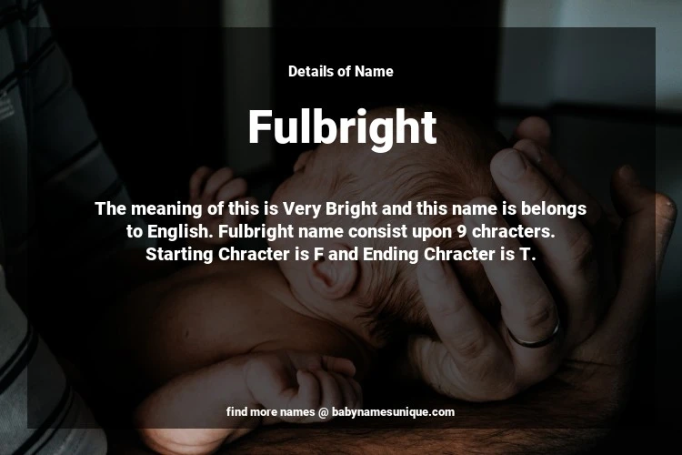 The name Fulbright is chosen by those who are willing to find Unique Boy Baby Names. The meaning of this is Very Bright and this name is belongs to English Origin. Baby Name Fulbright consist upon 9 chracters. Starting alphabet is F and ending alphabet is T. This name is used primarily by parents who are considering unique baby names for Boy. The Zodiac Sign suitbale for this name are;