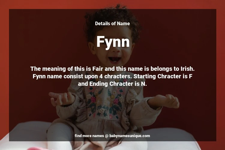 The name Fynn is chosen by those who are willing to find Unique Boy Baby Names. The meaning of this is Fair and this name is belongs to Irish Origin. Baby Name Fynn consist upon 4 chracters. Starting alphabet is F and ending alphabet is N. This name is used primarily by parents who are considering unique baby names for Boy. The Zodiac Sign suitbale for this name are;