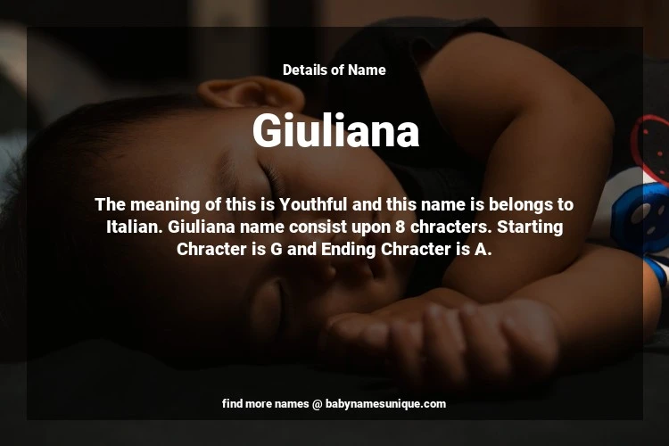 The name Giuliana is chosen by those who are willing to find Unique Transgenders Baby Names. The meaning of this is Youthful and this name is belongs to Italian Origin. Baby Name Giuliana consist upon 8 chracters. Starting alphabet is G and ending alphabet is A. This name is used primarily by parents who are considering unique baby names for Transgenders. The Zodiac Sign suitbale for this name are;