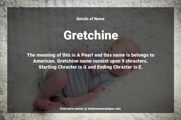 The name Gretchine is chosen by those who are willing to find Unique Transgenders Baby Names. The meaning of this is A Pearl and this name is belongs to American Origin. Baby Name Gretchine consist upon 9 chracters. Starting alphabet is G and ending alphabet is E. This name is used primarily by parents who are considering unique baby names for Transgenders. The Zodiac Sign suitbale for this name are;