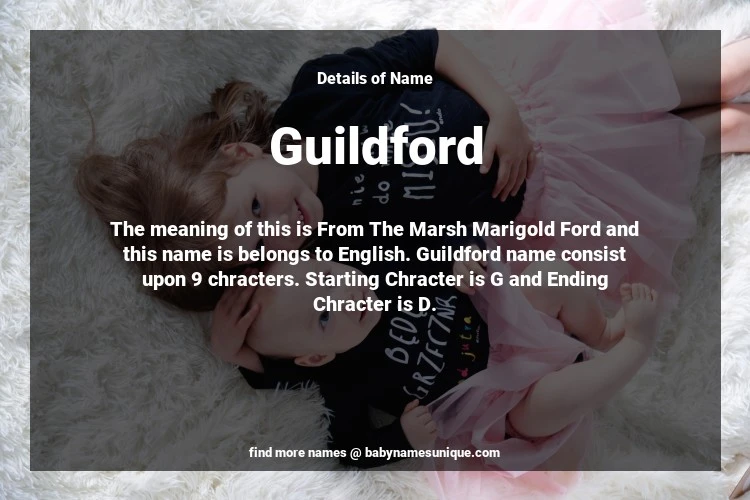The name Guildford is chosen by those who are willing to find Unique Boy Baby Names. The meaning of this is From The Marsh Marigold Ford and this name is belongs to English Origin. Baby Name Guildford consist upon 9 chracters. Starting alphabet is G and ending alphabet is D. This name is used primarily by parents who are considering unique baby names for Boy. The Zodiac Sign suitbale for this name are;