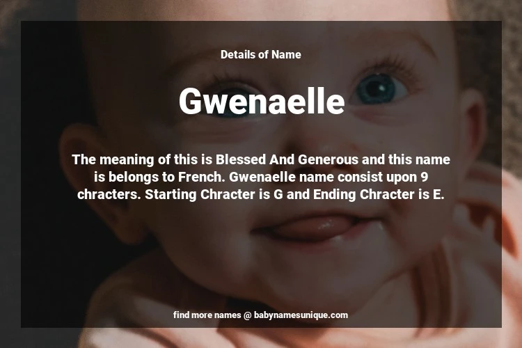 The name Gwenaelle is chosen by those who are willing to find Unique Transgenders Baby Names. The meaning of this is Blessed And Generous and this name is belongs to French Origin. Baby Name Gwenaelle consist upon 9 chracters. Starting alphabet is G and ending alphabet is E. This name is used primarily by parents who are considering unique baby names for Transgenders. The Zodiac Sign suitbale for this name are;