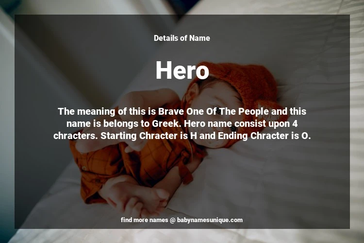 The name Hero is chosen by those who are willing to find Unique Transgenders Baby Names. The meaning of this is Brave One Of The People and this name is belongs to Greek Origin. Baby Name Hero consist upon 4 chracters. Starting alphabet is H and ending alphabet is O. This name is used primarily by parents who are considering unique baby names for Transgenders. The Zodiac Sign suitbale for this name are;
