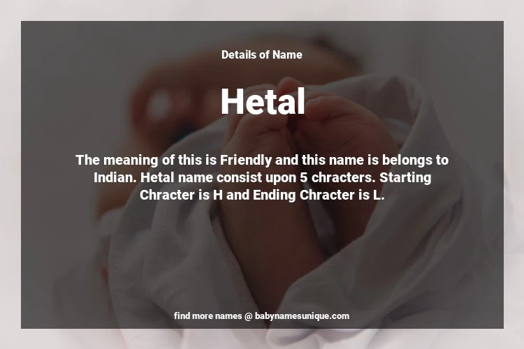 The name Hetal is chosen by those who are willing to find Unique Transgenders Baby Names. The meaning of this is Friendly and this name is belongs to Indian Origin. Baby Name Hetal consist upon 5 chracters. Starting alphabet is H and ending alphabet is L. This name is used primarily by parents who are considering unique baby names for Transgenders. The Zodiac Sign suitbale for this name are;
