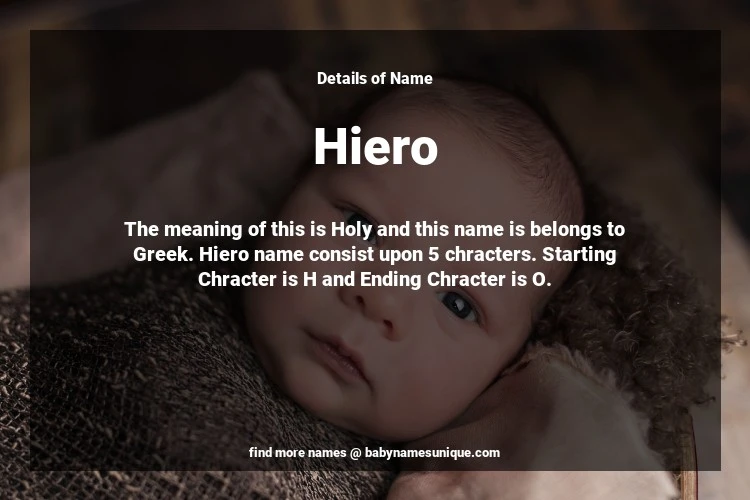 The name Hiero is chosen by those who are willing to find Unique Boy Baby Names. The meaning of this is Holy and this name is belongs to Greek Origin. Baby Name Hiero consist upon 5 chracters. Starting alphabet is H and ending alphabet is O. This name is used primarily by parents who are considering unique baby names for Boy. The Zodiac Sign suitbale for this name are;