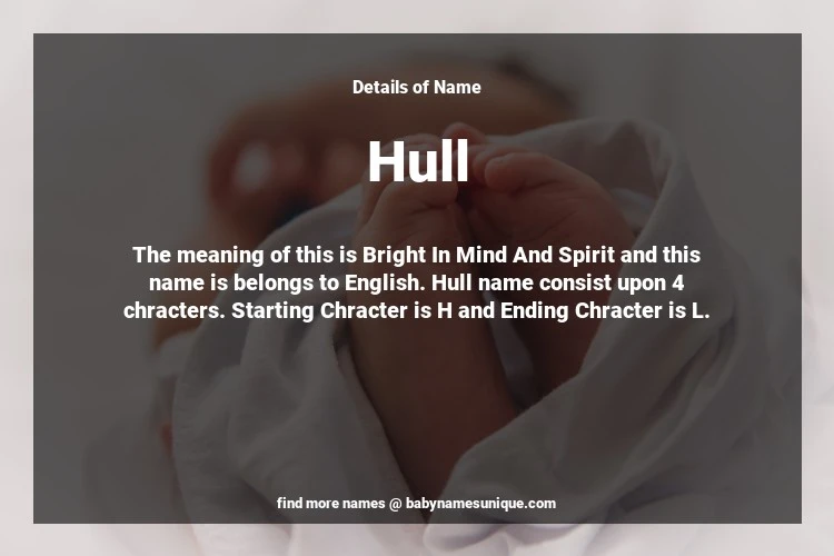 The name Hull is chosen by those who are willing to find Unique Transgenders Baby Names. The meaning of this is Bright In Mind And Spirit and this name is belongs to English Origin. Baby Name Hull consist upon 4 chracters. Starting alphabet is H and ending alphabet is L. This name is used primarily by parents who are considering unique baby names for Transgenders. The Zodiac Sign suitbale for this name are;