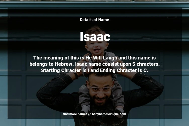 The name Isaac is chosen by those who are willing to find Unique Boy Baby Names. The meaning of this is He Will Laugh and this name is belongs to Hebrew Origin. Baby Name Isaac consist upon 5 chracters. Starting alphabet is I and ending alphabet is C. This name is used primarily by parents who are considering unique baby names for Boy. The Zodiac Sign suitbale for this name are;