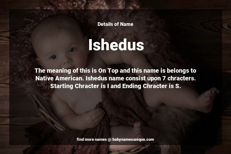 The name Ishedus is chosen by those who are willing to find Unique Transgenders Baby Names. The meaning of this is On Top and this name is belongs to Native American Origin. Baby Name Ishedus consist upon 7 chracters. Starting alphabet is I and ending alphabet is S. This name is used primarily by parents who are considering unique baby names for Transgenders. The Zodiac Sign suitbale for this name are;