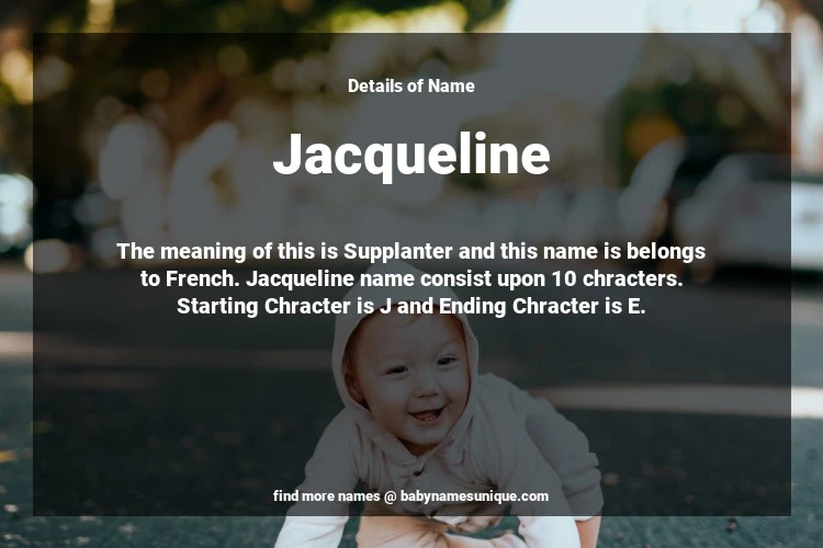 The name Jacqueline is chosen by those who are willing to find Unique Transgenders Baby Names. The meaning of this is Supplanter and this name is belongs to French Origin. Baby Name Jacqueline consist upon 10 chracters. Starting alphabet is J and ending alphabet is E. This name is used primarily by parents who are considering unique baby names for Transgenders. The Zodiac Sign suitbale for this name are;