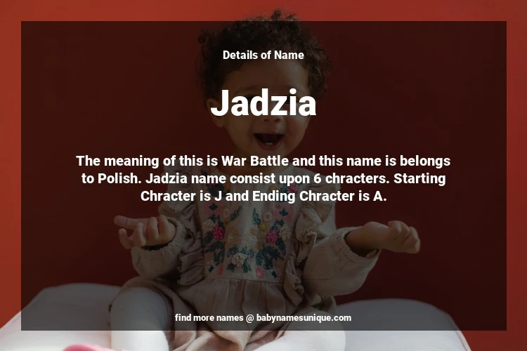 The name Jadzia is chosen by those who are willing to find Unique Transgenders Baby Names. The meaning of this is War Battle and this name is belongs to Polish Origin. Baby Name Jadzia consist upon 6 chracters. Starting alphabet is J and ending alphabet is A. This name is used primarily by parents who are considering unique baby names for Transgenders. The Zodiac Sign suitbale for this name are;