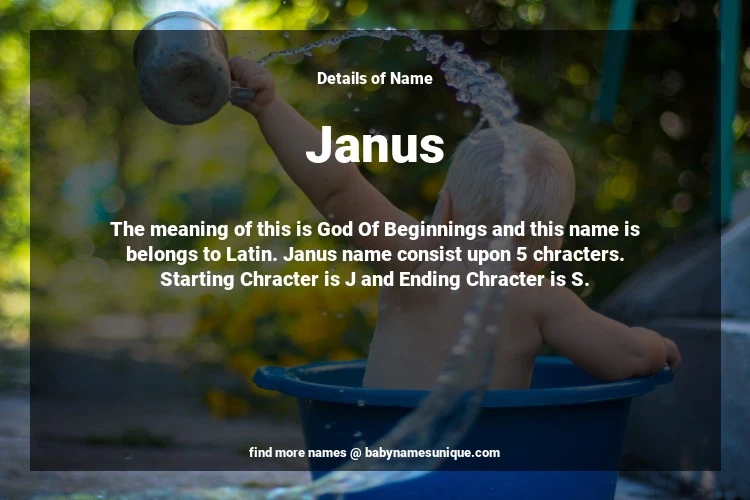 The name Janus is chosen by those who are willing to find Unique Transgenders Baby Names. The meaning of this is God Of Beginnings and this name is belongs to Latin Origin. Baby Name Janus consist upon 5 chracters. Starting alphabet is J and ending alphabet is S. This name is used primarily by parents who are considering unique baby names for Transgenders. The Zodiac Sign suitbale for this name are;