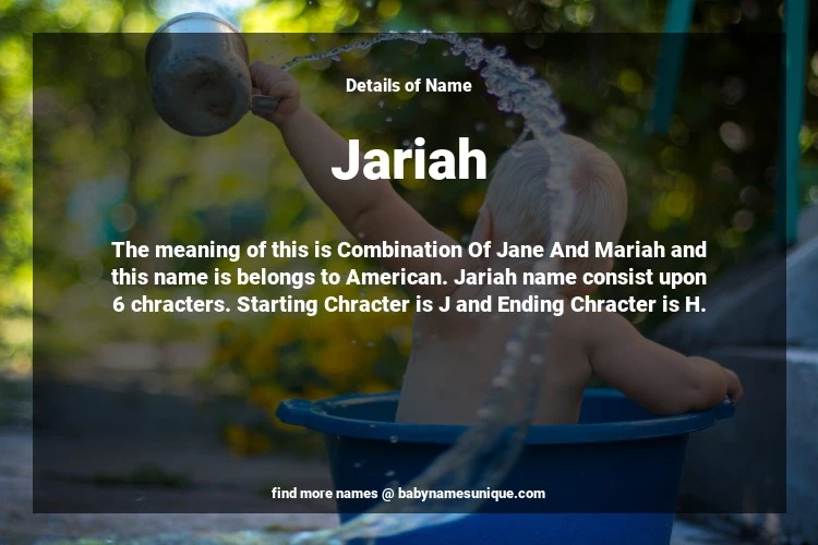 The name Jariah is chosen by those who are willing to find Unique Transgenders Baby Names. The meaning of this is Combination Of Jane And Mariah and this name is belongs to American Origin. Baby Name Jariah consist upon 6 chracters. Starting alphabet is J and ending alphabet is H. This name is used primarily by parents who are considering unique baby names for Transgenders. The Zodiac Sign suitbale for this name are;