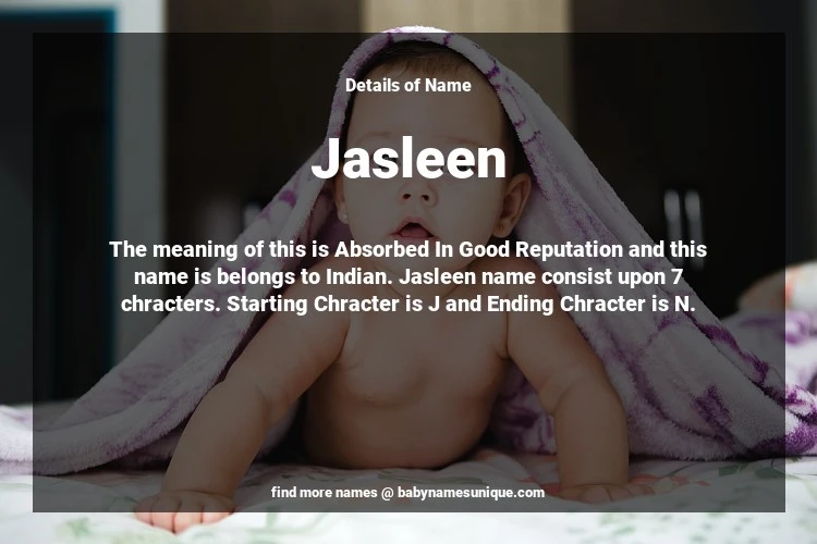 The name Jasleen is chosen by those who are willing to find Unique Transgenders Baby Names. The meaning of this is Absorbed In Good Reputation and this name is belongs to Indian Origin. Baby Name Jasleen consist upon 7 chracters. Starting alphabet is J and ending alphabet is N. This name is used primarily by parents who are considering unique baby names for Transgenders. The Zodiac Sign suitbale for this name are;
