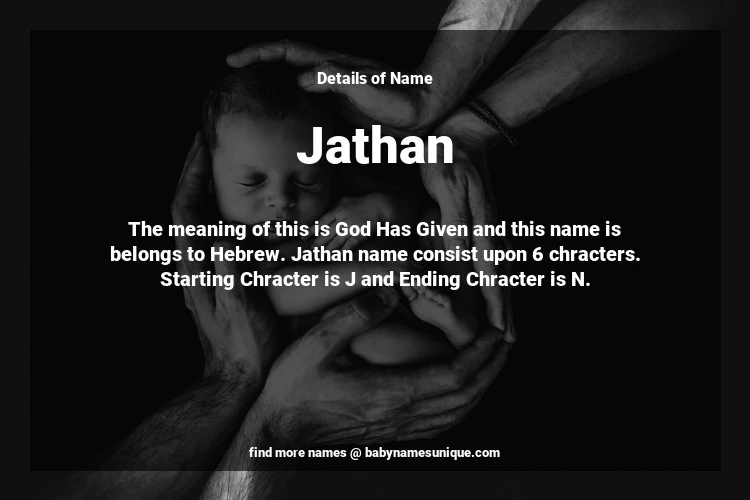 The name Jathan is chosen by those who are willing to find Unique Boy Baby Names. The meaning of this is God Has Given and this name is belongs to Hebrew Origin. Baby Name Jathan consist upon 6 chracters. Starting alphabet is J and ending alphabet is N. This name is used primarily by parents who are considering unique baby names for Boy. The Zodiac Sign suitbale for this name are;