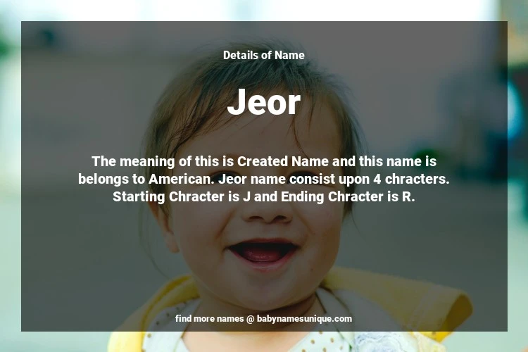 The name Jeor is chosen by those who are willing to find Unique Boy Baby Names. The meaning of this is Created Name and this name is belongs to American Origin. Baby Name Jeor consist upon 4 chracters. Starting alphabet is J and ending alphabet is R. This name is used primarily by parents who are considering unique baby names for Boy. The Zodiac Sign suitbale for this name are;