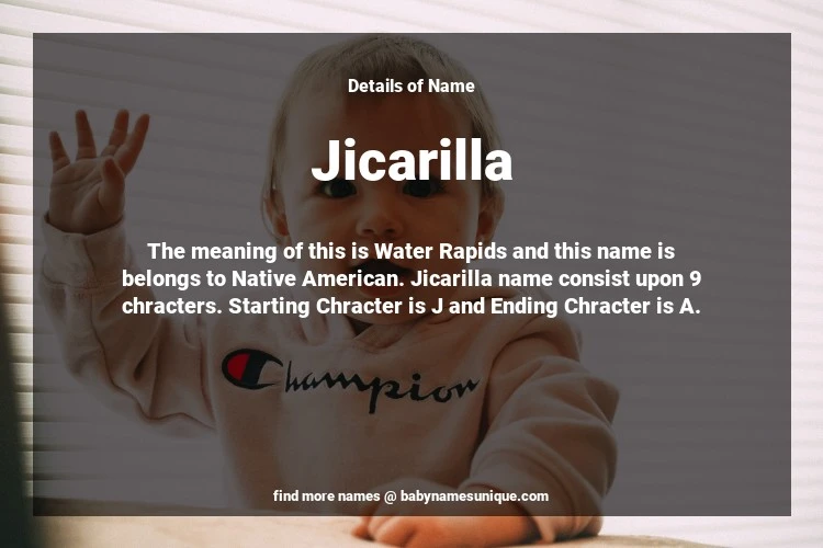 The name Jicarilla is chosen by those who are willing to find Unique Transgenders Baby Names. The meaning of this is Water Rapids and this name is belongs to Native American Origin. Baby Name Jicarilla consist upon 9 chracters. Starting alphabet is J and ending alphabet is A. This name is used primarily by parents who are considering unique baby names for Transgenders. The Zodiac Sign suitbale for this name are;