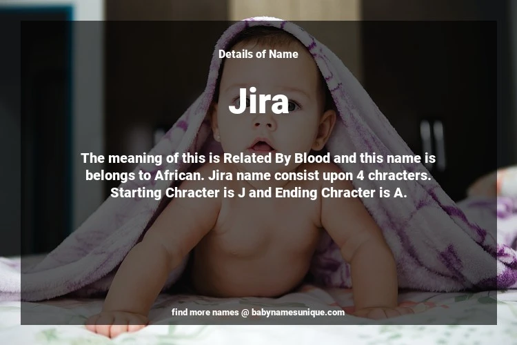 The name Jira is chosen by those who are willing to find Unique Transgenders Baby Names. The meaning of this is Related By Blood and this name is belongs to African Origin. Baby Name Jira consist upon 4 chracters. Starting alphabet is J and ending alphabet is A. This name is used primarily by parents who are considering unique baby names for Transgenders. The Zodiac Sign suitbale for this name are;
