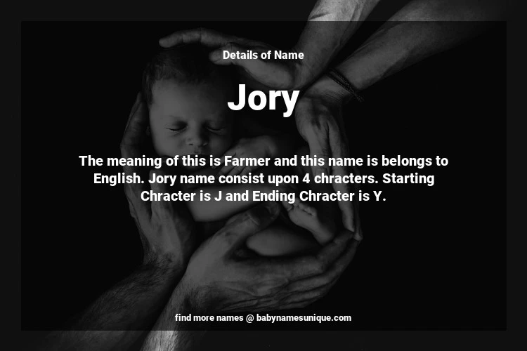 The name Jory is chosen by those who are willing to find Unique Transgenders Baby Names. The meaning of this is Farmer and this name is belongs to English Origin. Baby Name Jory consist upon 4 chracters. Starting alphabet is J and ending alphabet is Y. This name is used primarily by parents who are considering unique baby names for Transgenders. The Zodiac Sign suitbale for this name are;