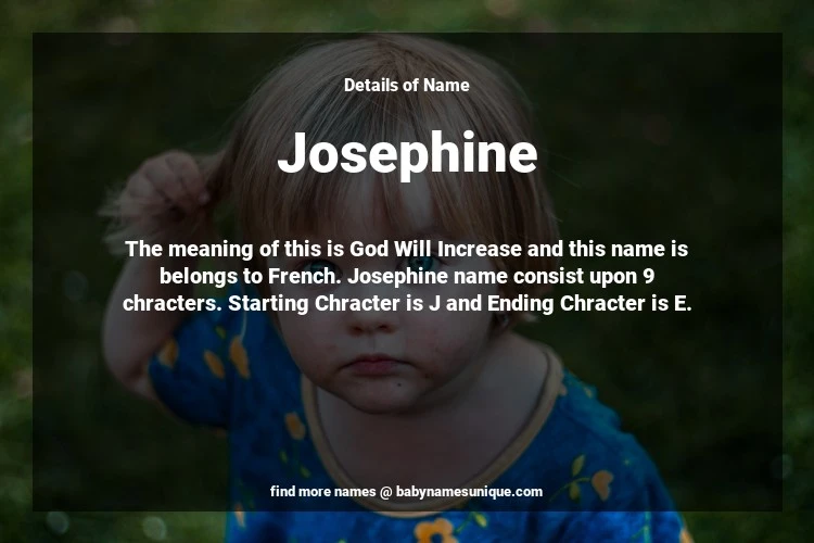 The name Josephine is chosen by those who are willing to find Unique Transgenders Baby Names. The meaning of this is God Will Increase and this name is belongs to French Origin. Baby Name Josephine consist upon 9 chracters. Starting alphabet is J and ending alphabet is E. This name is used primarily by parents who are considering unique baby names for Transgenders. The Zodiac Sign suitbale for this name are;