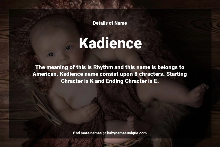 The name Kadience is chosen by those who are willing to find Unique Transgenders Baby Names. The meaning of this is Rhythm and this name is belongs to American Origin. Baby Name Kadience consist upon 8 chracters. Starting alphabet is K and ending alphabet is E. This name is used primarily by parents who are considering unique baby names for Transgenders. The Zodiac Sign suitbale for this name are;