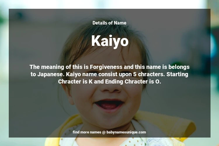 The name Kaiyo is chosen by those who are willing to find Unique Transgenders Baby Names. The meaning of this is Forgiveness and this name is belongs to Japanese Origin. Baby Name Kaiyo consist upon 5 chracters. Starting alphabet is K and ending alphabet is O. This name is used primarily by parents who are considering unique baby names for Transgenders. The Zodiac Sign suitbale for this name are;