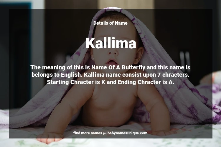 The name Kallima is chosen by those who are willing to find Unique Transgenders Baby Names. The meaning of this is Name Of A Butterfly and this name is belongs to English Origin. Baby Name Kallima consist upon 7 chracters. Starting alphabet is K and ending alphabet is A. This name is used primarily by parents who are considering unique baby names for Transgenders. The Zodiac Sign suitbale for this name are;
