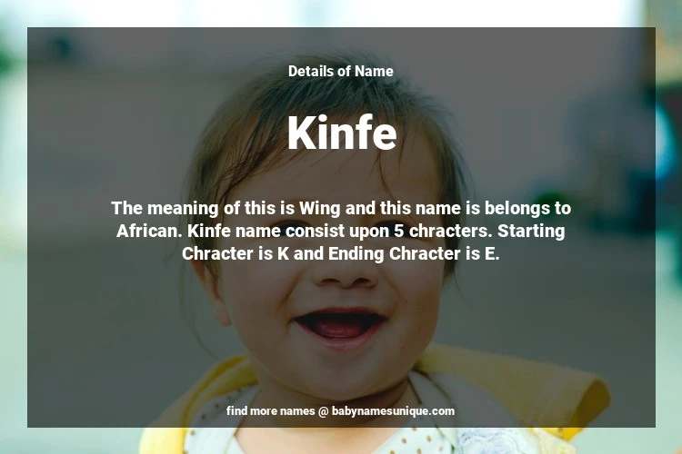 The name Kinfe is chosen by those who are willing to find Unique Transgenders Baby Names. The meaning of this is Wing and this name is belongs to African Origin. Baby Name Kinfe consist upon 5 chracters. Starting alphabet is K and ending alphabet is E. This name is used primarily by parents who are considering unique baby names for Transgenders. The Zodiac Sign suitbale for this name are;
