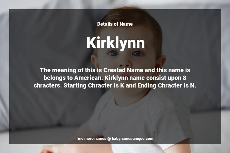 The name Kirklynn is chosen by those who are willing to find Unique Transgenders Baby Names. The meaning of this is Created Name and this name is belongs to American Origin. Baby Name Kirklynn consist upon 8 chracters. Starting alphabet is K and ending alphabet is N. This name is used primarily by parents who are considering unique baby names for Transgenders. The Zodiac Sign suitbale for this name are;