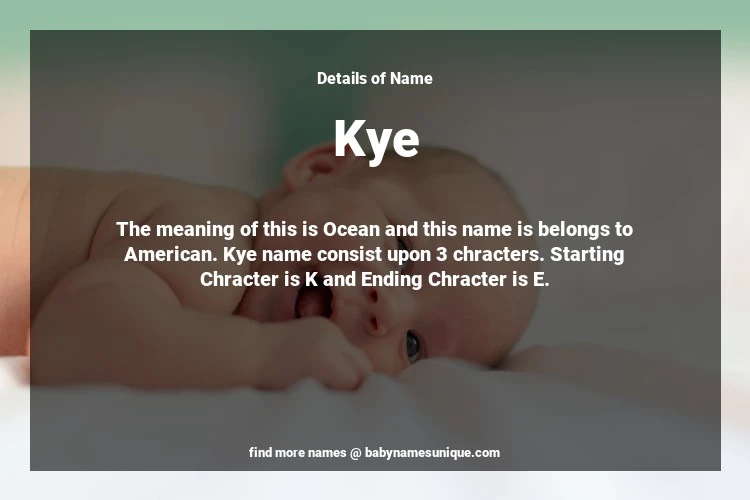 The name Kye is chosen by those who are willing to find Unique Transgenders Baby Names. The meaning of this is Ocean and this name is belongs to American Origin. Baby Name Kye consist upon 3 chracters. Starting alphabet is K and ending alphabet is E. This name is used primarily by parents who are considering unique baby names for Transgenders. The Zodiac Sign suitbale for this name are;