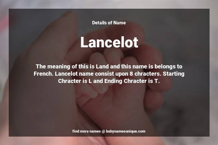 The name Lancelot is chosen by those who are willing to find Unique Boy Baby Names. The meaning of this is Land and this name is belongs to French Origin. Baby Name Lancelot consist upon 8 chracters. Starting alphabet is L and ending alphabet is T. This name is used primarily by parents who are considering unique baby names for Boy. The Zodiac Sign suitbale for this name are;