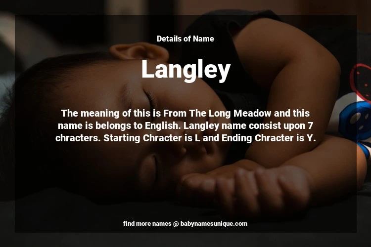 The name Langley is chosen by those who are willing to find Unique Transgenders Baby Names. The meaning of this is From The Long Meadow and this name is belongs to English Origin. Baby Name Langley consist upon 7 chracters. Starting alphabet is L and ending alphabet is Y. This name is used primarily by parents who are considering unique baby names for Transgenders. The Zodiac Sign suitbale for this name are;