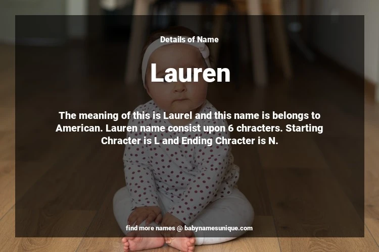 The name Lauren is chosen by those who are willing to find Unique Transgenders Baby Names. The meaning of this is Laurel and this name is belongs to American Origin. Baby Name Lauren consist upon 6 chracters. Starting alphabet is L and ending alphabet is N. This name is used primarily by parents who are considering unique baby names for Transgenders. The Zodiac Sign suitbale for this name are;