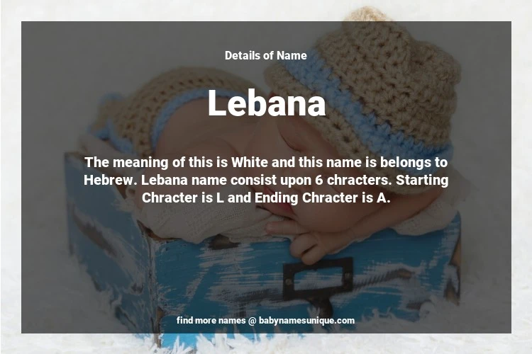 The name Lebana is chosen by those who are willing to find Unique Transgenders Baby Names. The meaning of this is White and this name is belongs to Hebrew Origin. Baby Name Lebana consist upon 6 chracters. Starting alphabet is L and ending alphabet is A. This name is used primarily by parents who are considering unique baby names for Transgenders. The Zodiac Sign suitbale for this name are;