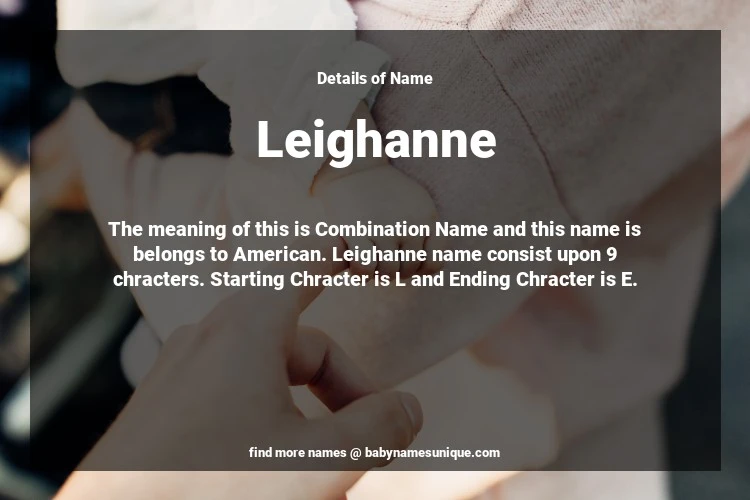 The name Leighanne is chosen by those who are willing to find Unique Transgenders Baby Names. The meaning of this is Combination Name and this name is belongs to American Origin. Baby Name Leighanne consist upon 9 chracters. Starting alphabet is L and ending alphabet is E. This name is used primarily by parents who are considering unique baby names for Transgenders. The Zodiac Sign suitbale for this name are;