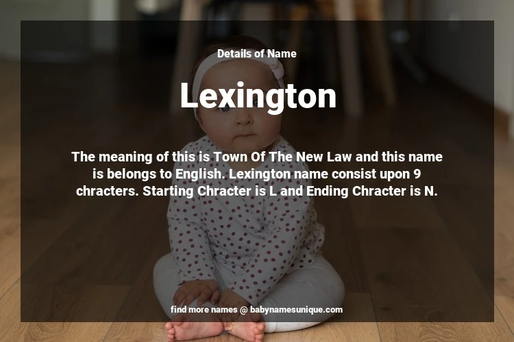 The name Lexington is chosen by those who are willing to find Unique Transgenders Baby Names. The meaning of this is Town Of The New Law and this name is belongs to English Origin. Baby Name Lexington consist upon 9 chracters. Starting alphabet is L and ending alphabet is N. This name is used primarily by parents who are considering unique baby names for Transgenders. The Zodiac Sign suitbale for this name are;