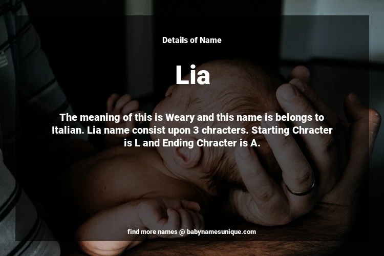 The name Lia is chosen by those who are willing to find Unique Transgenders Baby Names. The meaning of this is Weary and this name is belongs to Italian Origin. Baby Name Lia consist upon 3 chracters. Starting alphabet is L and ending alphabet is A. This name is used primarily by parents who are considering unique baby names for Transgenders. The Zodiac Sign suitbale for this name are;