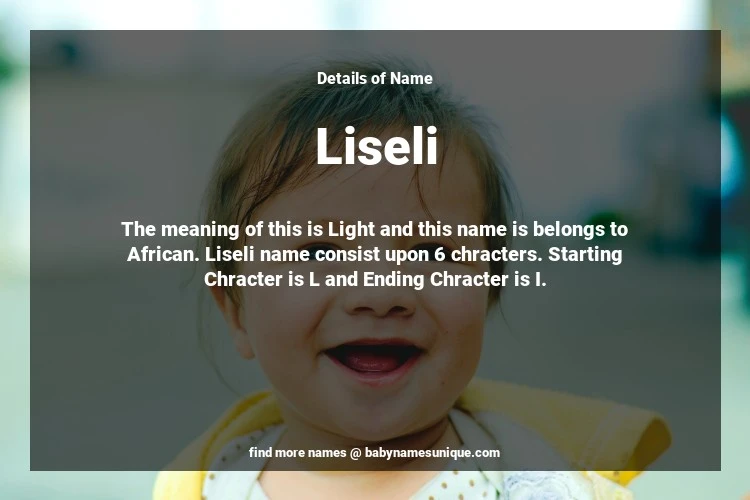 The name Liseli is chosen by those who are willing to find Unique Transgenders Baby Names. The meaning of this is Light and this name is belongs to African Origin. Baby Name Liseli consist upon 6 chracters. Starting alphabet is L and ending alphabet is I. This name is used primarily by parents who are considering unique baby names for Transgenders. The Zodiac Sign suitbale for this name are;