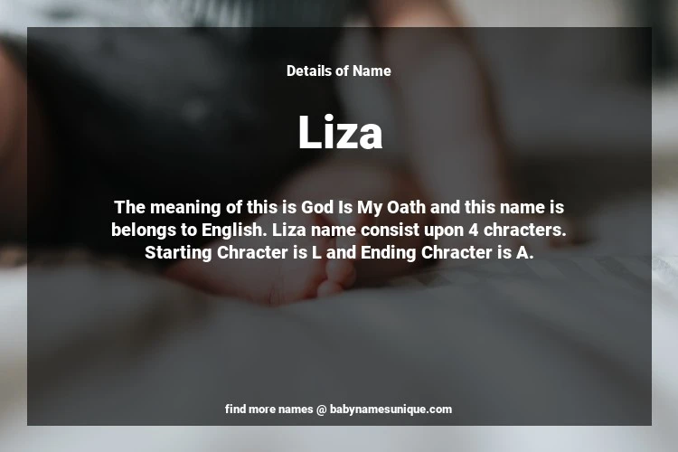The name Liza is chosen by those who are willing to find Unique Transgenders Baby Names. The meaning of this is God Is My Oath and this name is belongs to English Origin. Baby Name Liza consist upon 4 chracters. Starting alphabet is L and ending alphabet is A. This name is used primarily by parents who are considering unique baby names for Transgenders. The Zodiac Sign suitbale for this name are;