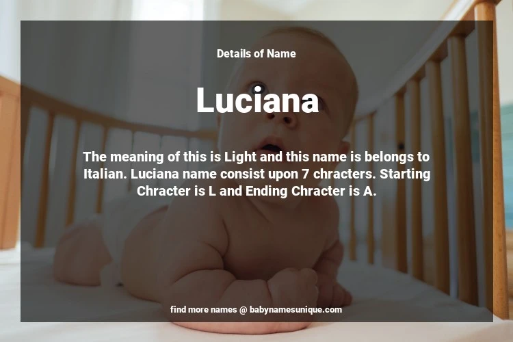 The name Luciana is chosen by those who are willing to find Unique Transgenders Baby Names. The meaning of this is Light and this name is belongs to Italian Origin. Baby Name Luciana consist upon 7 chracters. Starting alphabet is L and ending alphabet is A. This name is used primarily by parents who are considering unique baby names for Transgenders. The Zodiac Sign suitbale for this name are;