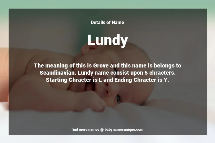 The name Lundy is chosen by those who are willing to find Unique Transgenders Baby Names. The meaning of this is Grove and this name is belongs to Scandinavian Origin. Baby Name Lundy consist upon 5 chracters. Starting alphabet is L and ending alphabet is Y. This name is used primarily by parents who are considering unique baby names for Transgenders. The Zodiac Sign suitbale for this name are;