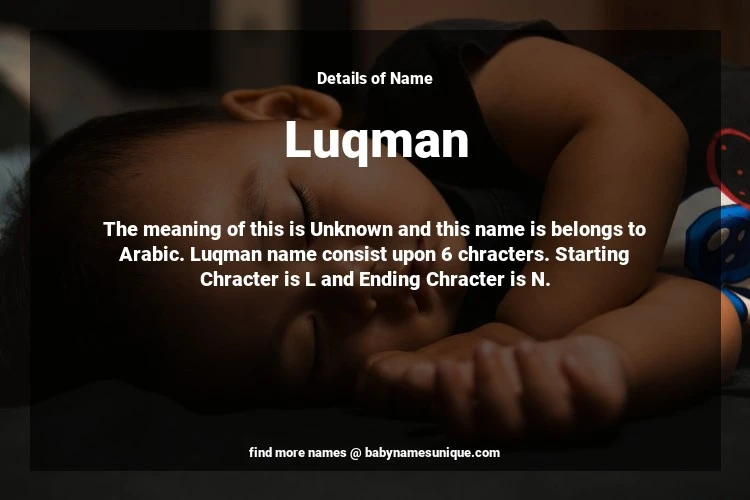 The name Luqman is chosen by those who are willing to find Unique Boy Baby Names. The meaning of this is Unknown and this name is belongs to Arabic Origin. Baby Name Luqman consist upon 6 chracters. Starting alphabet is L and ending alphabet is N. This name is used primarily by parents who are considering unique baby names for Boy. The Zodiac Sign suitbale for this name are;