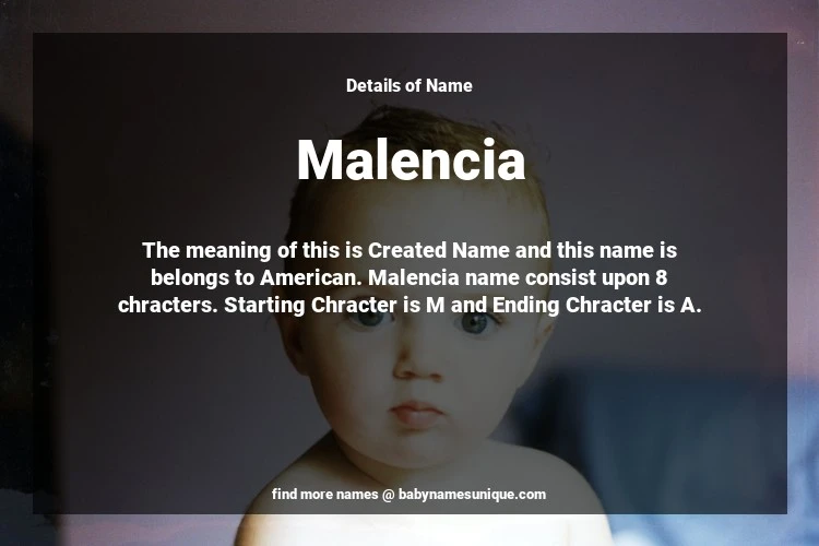 The name Malencia is chosen by those who are willing to find Unique Transgenders Baby Names. The meaning of this is Created Name and this name is belongs to American Origin. Baby Name Malencia consist upon 8 chracters. Starting alphabet is M and ending alphabet is A. This name is used primarily by parents who are considering unique baby names for Transgenders. The Zodiac Sign suitbale for this name are;