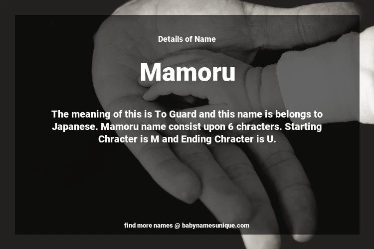 The name Mamoru is chosen by those who are willing to find Unique Boy Baby Names. The meaning of this is To Guard and this name is belongs to Japanese Origin. Baby Name Mamoru consist upon 6 chracters. Starting alphabet is M and ending alphabet is U. This name is used primarily by parents who are considering unique baby names for Boy. The Zodiac Sign suitbale for this name are;