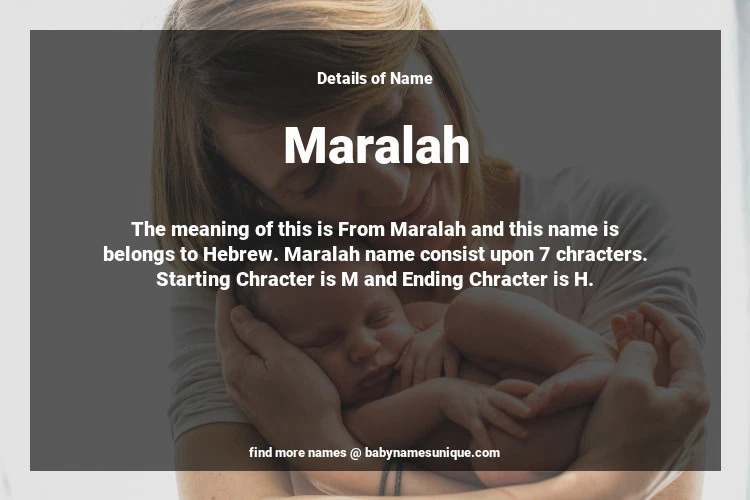 The name Maralah is chosen by those who are willing to find Unique Transgenders Baby Names. The meaning of this is From Maralah and this name is belongs to Hebrew Origin. Baby Name Maralah consist upon 7 chracters. Starting alphabet is M and ending alphabet is H. This name is used primarily by parents who are considering unique baby names for Transgenders. The Zodiac Sign suitbale for this name are;