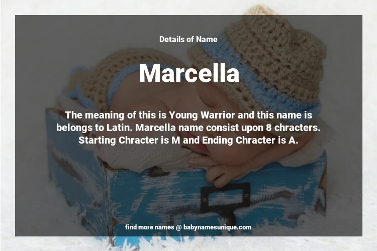 The name Marcella is chosen by those who are willing to find Unique Transgenders Baby Names. The meaning of this is Young Warrior and this name is belongs to Latin Origin. Baby Name Marcella consist upon 8 chracters. Starting alphabet is M and ending alphabet is A. This name is used primarily by parents who are considering unique baby names for Transgenders. The Zodiac Sign suitbale for this name are;