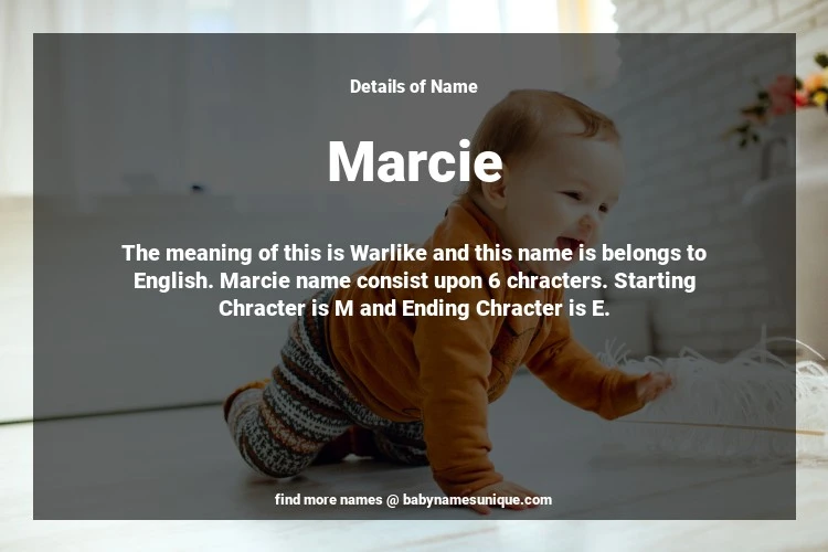 The name Marcie is chosen by those who are willing to find Unique Transgenders Baby Names. The meaning of this is Warlike and this name is belongs to English Origin. Baby Name Marcie consist upon 6 chracters. Starting alphabet is M and ending alphabet is E. This name is used primarily by parents who are considering unique baby names for Transgenders. The Zodiac Sign suitbale for this name are;
