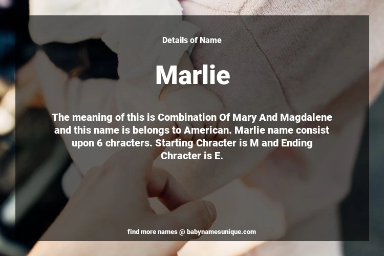 The name Marlie is chosen by those who are willing to find Unique Transgenders Baby Names. The meaning of this is Combination Of Mary And Magdalene and this name is belongs to American Origin. Baby Name Marlie consist upon 6 chracters. Starting alphabet is M and ending alphabet is E. This name is used primarily by parents who are considering unique baby names for Transgenders. The Zodiac Sign suitbale for this name are;