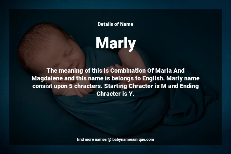 The name Marly is chosen by those who are willing to find Unique Transgenders Baby Names. The meaning of this is Combination Of Maria And Magdalene and this name is belongs to English Origin. Baby Name Marly consist upon 5 chracters. Starting alphabet is M and ending alphabet is Y. This name is used primarily by parents who are considering unique baby names for Transgenders. The Zodiac Sign suitbale for this name are;